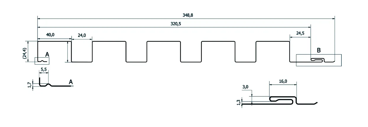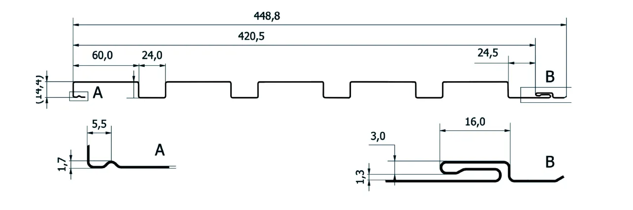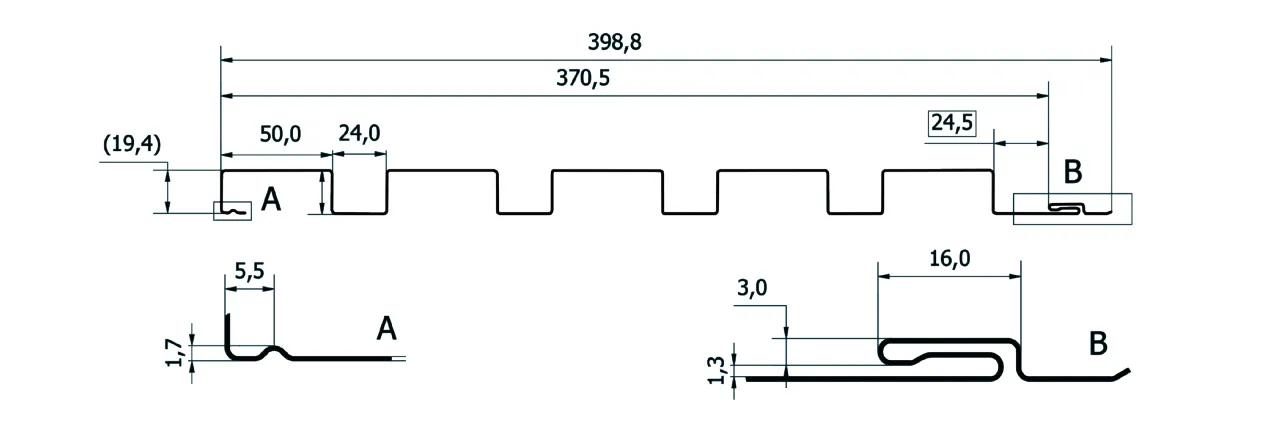 Budmat lameles ir pieejamas vairākos profilos — LM5-30, LM5-40, LM5-50, LM5-60 un LM5-70. Visi modeļi ir izgatavoti no 0.5 mm bieza tērauda, lokšņu garums ir 500–6000 mm, materiāls ir G/L AZ150. Atkarībā no izvēlētā modeļa atšķiras kopējais un efektīvais platums, profila augstums un dēļa platums, ļaujot pielāgot apdares risinājumu konkrētajam arhitektūras stilam un projekta prasībām.